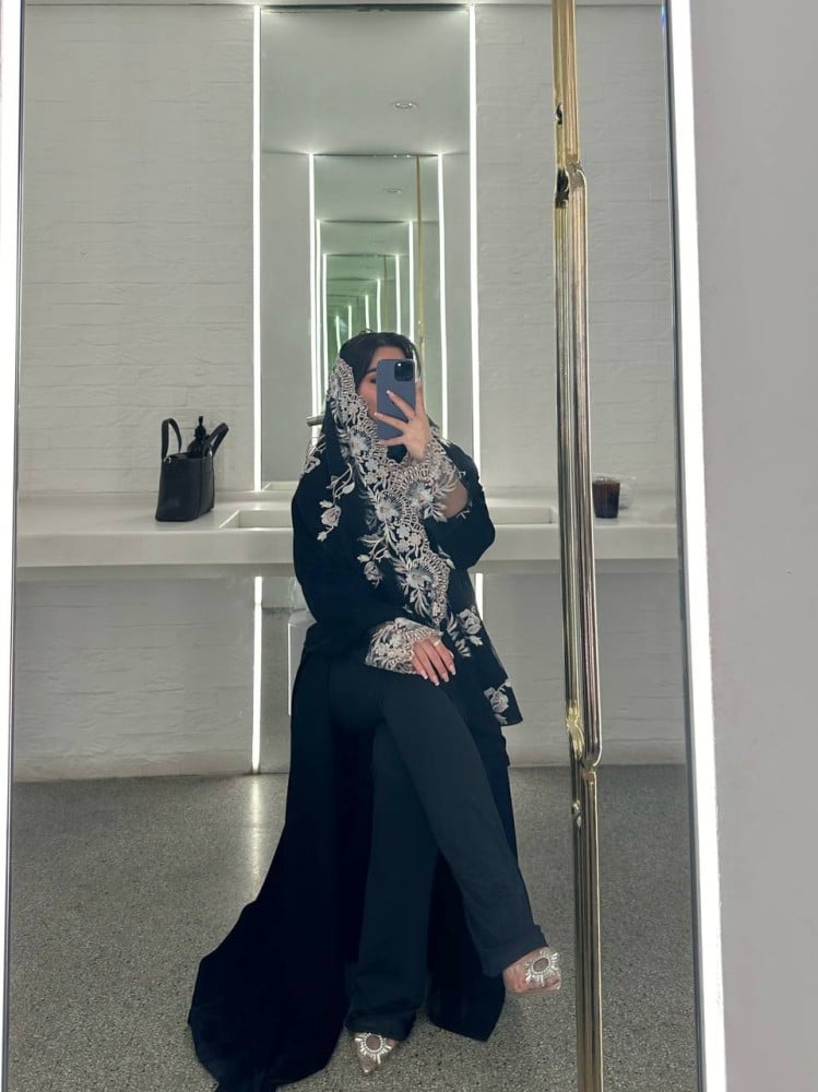 تفاصيل العباية :القماش : كريب ملكي مع دانتيلالقصة : كلوشالطرحه مبطنةيُمكن تبطين الاكمام عند الطلب بالملاحظات